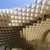 Alle Ebenen sind durch einen Steg miteinander verbunden, der sich unter den einzelnen Schirmen hindurchschlängelt und wunderschöne Ausblicke auf die alten Quartiere Sevillas freigibt.In seiner Gestalt und Konzeption bildet Metropol Parasol ein neues Wahrzeichen der Stadt. Die Struktur des Sonnendachs wurde aus Kerto-Q-Furnierschichtholzplatten gefertigt, die in einem orthogonalen Raster von 1,5 m x 1,5 m angeordnet sind. (Kerto-Q ist eine tragende und formstabile Furnierschichtholz-Platte, die für die anspruchsvollsten Anwendungen eingesetzt wird. Sie wird in Kerto-Ripa-Elementen einsetzen, die für steife und hochwertige Boden- und Dachstrukturen sorgen.