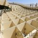 einzelnen Furnierlagen verläuft vorwiegend in Plattenlängs- und zu ca. 20% in Querrichtung. Zum Schutz der Holzkonstruktion, die „ohne Dach“ der Witterung ausgesetzt ist, verwendete man ein neues, von den Architekten entwickeltes Holzschutzsystem: Die bewitterten Holzelemente wurden mit einer wasserdichten, aber dampfdurchlässigen 2-K-Polyurethanbeschichtung versehen. Mit ihrer weißen Deckschicht verhilft sie der Dachstruktur zu einer glänzenden Oberfläche.