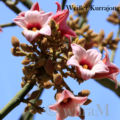 Weißer Kurrajonggenannt, hat ebenfalls glockenförmige Blüten, nur sind diese viel größer. Dieser Weiße  Kurrajong auch Spitzenrinde (im englischen Lacebark) genannt ist ein laubabwerfender Baum mit wasserspeicherndem am unteren Ende leicht verdicktem Stamm und blüht, wenn die an der Unterseite behaarten Brachychiton discolorhandflächen großen tief-gelappten und herzförmigen Blätter  abgeworfen sind, in voller Pracht. Er verträgt sehr gut eine Dürre und hat seine Heimat in Heimat New South Wales, Queensland und Nordaustralien, Brachychiton discolorin küstennahem Buschland und in Wäldern mit tropischem Saisonklima. Die Blüten erscheinen im späten Frühjahr und Sommer. Diese sind glockenförmig,  etwa drei bis vier Zentimeter lang, außen behaart und rot, pink oder magentafarben.